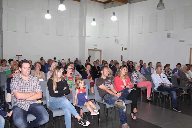 Esther, de la Asociación, conversa con Juanín antes de empezar el acto.