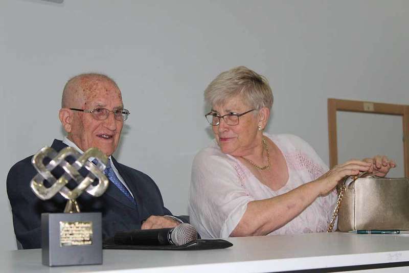 Emilio Berdayes entrega el trofeo a Juanín ante la atenta mirada de su compañeroa, Esther.