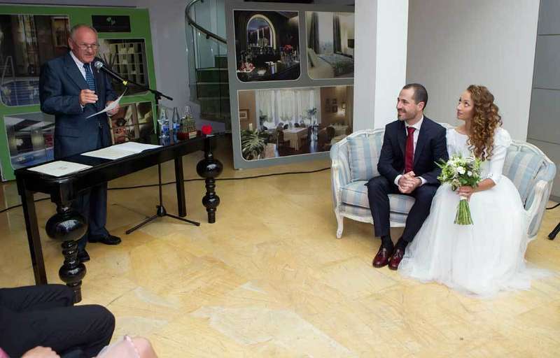 Juan Camino, concejal del Partido Independiente de Siero (PINSI) ofició la ceremonia que tenía lugar en el Castillo del Bosque de la Zoreda, en Oveido. Los más allegados de los contrayentes fueron los testigos directos de este enlace.