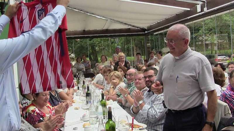 La entrega de los presentes fue una sorpresa para Segundo Gutiérrez. Durante los postres de la comida que todos compartieron se le entregaron los regalos. Además del álbum, recibió una camiseta del equipo de su alma: el Atlético de Madrid, con el número ocho, en referencia a los años que estuvo de labor pastoral en estas parroquias.