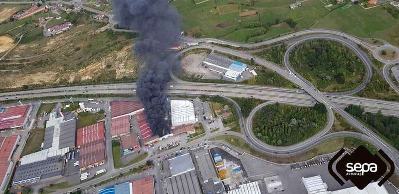 Efectivos de Bomberos del Servicio de Emergencias del Principado de Asturias (SEPA) lobraban extinguir el incendio que se declaraba poco antes de las dos de la tarde. El Centro de Coordinación de Emergencias recibió el primer aviso a las 13:47 horas, y de inmediato se movilizó al Jefe de Bomberos de la Zona Centro Este, junto a 15 efectivos de bomberos del SEPA de los parques de La Morgal, San Martín del Rey Aurelio, Avilés, Mieres y Villaviciosa que se trasladaron con tres autobombas forestales, tres autobombas urbanas, dos vehículos nodriza, dos autoescaleras, un vehículo ligero y un furgón multisocorro, además del Vehículo de Apoyo Logístico (VAL).