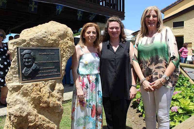 El recuerdo de Consuelo Suárez Fonseca estuvo hoy domingo más presente en Ferrera al cumplirse dos décadas de vida desde la constitución de la Fundación a la que da nombre. Coincidiendo con la celebración de San Juan, fiesta en la localidad sierense, se descubrió una placa con el rostro de Consuelo y un mensaje de agradecimiento de sus paisanos en el que se puede leer: “Del pueblo de Ferrera a Consuelo Suárez Fonseca, en reconocimiento por su donación en 1998 que dio origen a esta Fundación”. La alcaldesa de Noreña, Amparo Antuña, y la edil de Cultura del Ayuntamiento de Siero, Aurora Cifuentes, fueron las encargadas de descubrir la placa ante la presencia de los incondicionales de la gran familia que se ha creado en Ferrera en este tiempo.