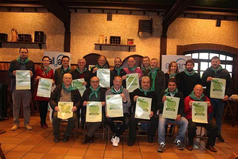 De izquirda a dereha Alfonso Prado (Llagar La Morena), Manuel Riestra (Sidra Muñiz),José María Díaz (Casería San Juan del Obispo),Javier Ramos (Sidra Fran),Ángel García (Alcalde de Siero),Alberto Fanjul (Sidra Quelo), Alfonso Arbesú (Sidra Arbesú), Carlos González (Sidra Fanjul) y José Ramón Llaneza (Sidra Fonciello)