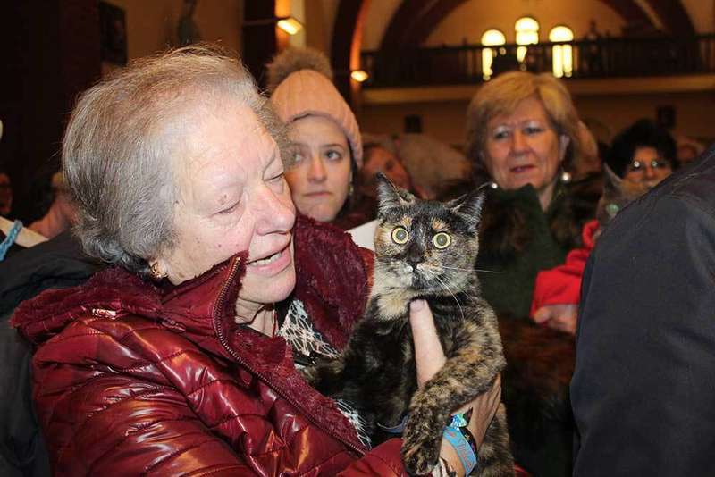 La sacristana Rosi Menéndez fue la encargada de llevar a bendecir a uno de los gatos del cura de Lugones.