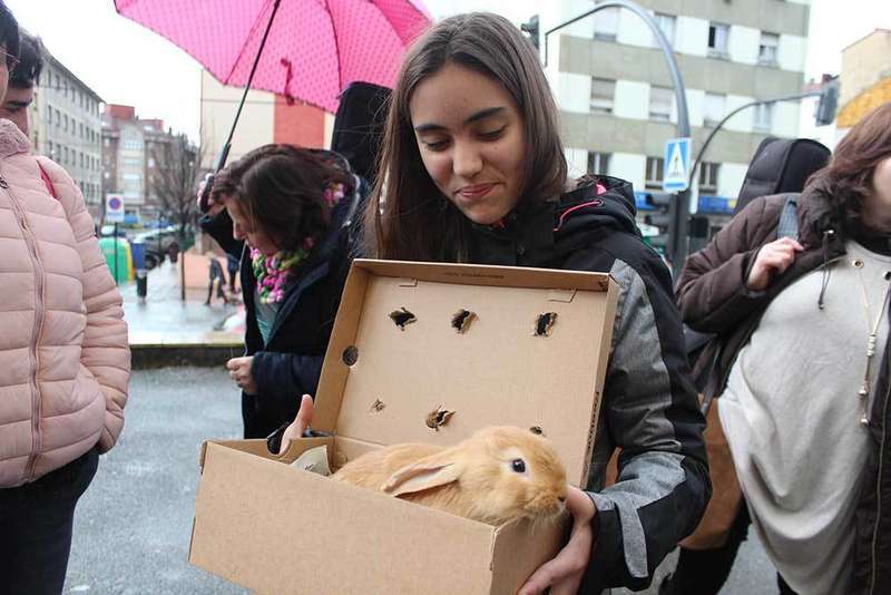 Olaya Cobos llevó a su conejo Bugs Bunny.