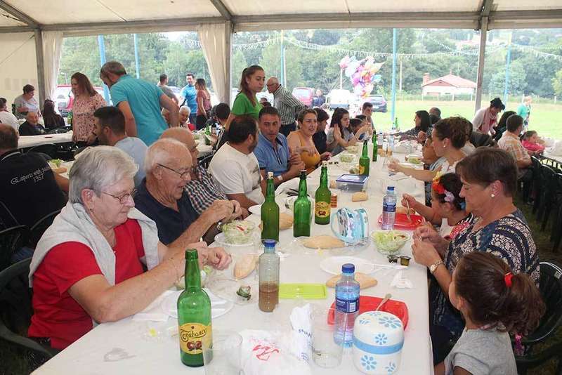 La festividad en honor a Santa Apolonia, que este año cumple 35 años de celebración, comenzó el sábado con la comida popular en el prau de la fiesta. Los 350 romeros comieron 25 corderos y compartieron mesa y mantel en estas fiestas patronales que son un referente en la Comarca del Nora en la celebración de fiestas de prau.