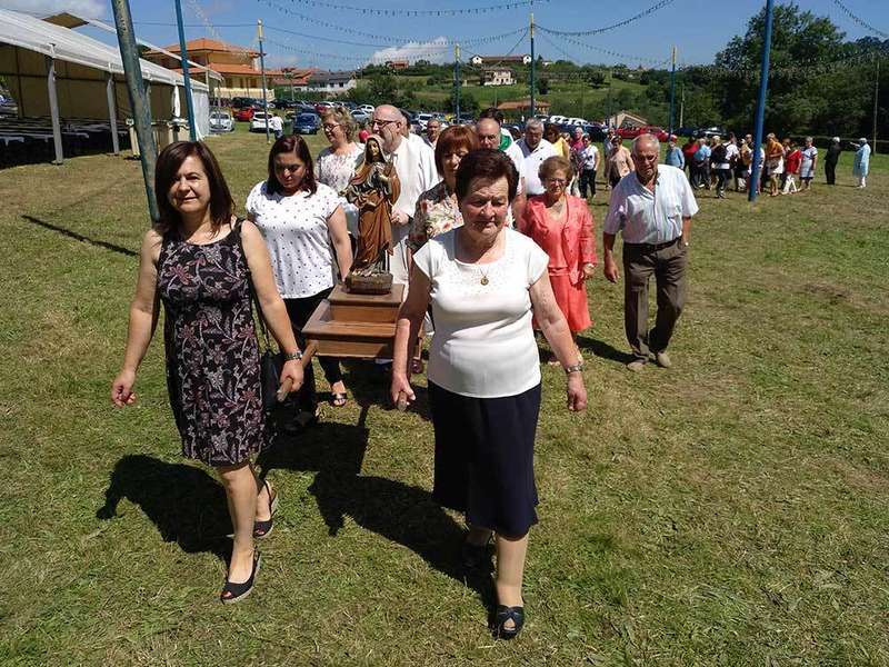 La entrega de la insignia fue uno de los momentos más emotivos de la celebración dominical, en la que el párroco, Pedro Tardón, ofició la misa en honor a la patrona en el prau de la fiesta, arropada por el Coro de Santa Apolonia y seguida por la procesión.