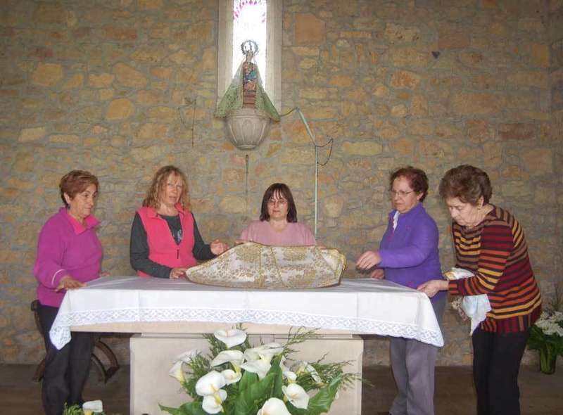 Mena, Rosi, Tere, Carmina e Isabelita, se encargan de la imagen de la Virgen.