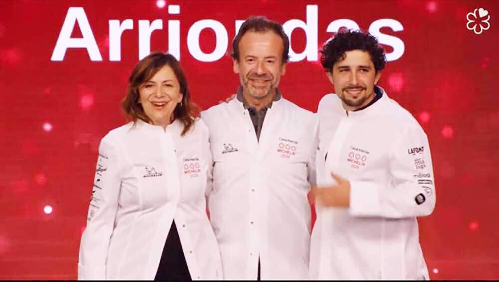 Nacho y Esther Manzano recogieron su chaquetilla de tres Estrellas Michelin junto a Chus Sánchez Manzano.