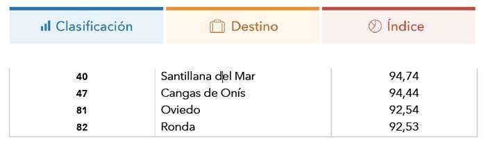 Ranking de los destinos españoles