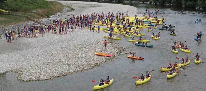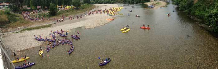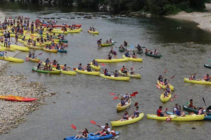 Casi 600 estudiantes de Medicina que preparan el examen MIR (Médico Interno Residente), que tendrá lugar el próximo mes de enero, participaron hoy domingo en el II Descenso MIR del Sella. Los estudiantes de Medicina, que tomaron la salida en Arriondas, inundaron el río en las canoas de las empresas Frontera Verde y Cangas Aventura. Se trata de uno de los grupos más numerosos que hace el Descenso Turístico del Sella.
