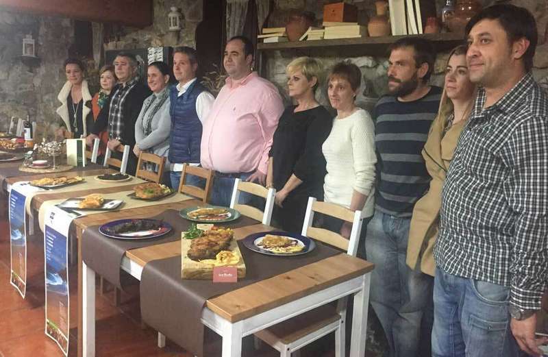 La alcladesa de Caravia, Salomé Samartino, presentaba las Jornadas hoy, acompañada por los hosteleros que participan en la iniciativa.