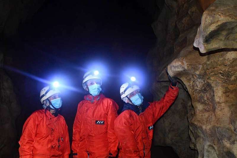 Los grupos para entrar a la cueva son muy reducidos, de 8 personas máximo, por precaución y también por respeto al entorno. Para acceder hay que pertrecharse con mono, casco con luz y guantes.