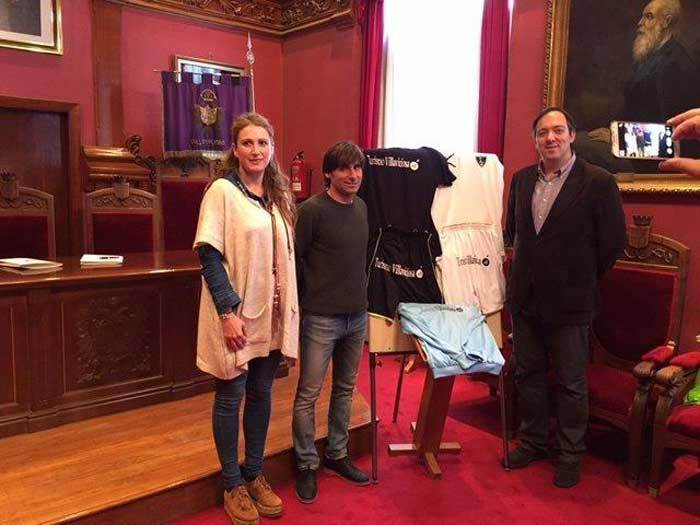 Ana López, Pedro Ménendez y Alejandro Vega en la presentación de la equipación.