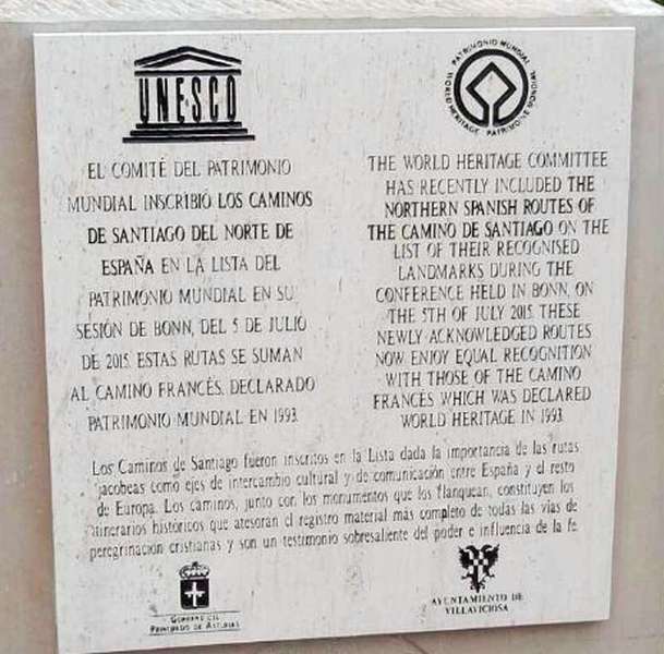 Placa que señaliza el Camino de Santiago del Norte como Patrimonio de la Humanidad.
