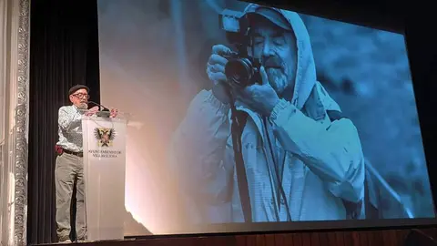 Eloy Couceiro, Mención de honor por La Comunidad del mazo -fotografía situada a la izquierda-. - Ganador: La cuenta atrás, de Santi de la Vega (Picos de Europa, 2022). Sin poder contener apenas las lágrimas contó a los presentes “Yo estoy súper feliz por traer esta foto aquí, ser ganador, pero en realidad esta foto es bastante triste. Antonio es el último gran pastor de Picos de Europa. Lleva allí desde los ocho años y este es el primer año que no termina la temporada por salud. Solo hay tres pastores que pasan la temporada en los Picos de Europa y, como veis, solo llevan allí cinco mil años. Actualmente, las directrices del pastoreo han visto que el parque, la relación con los lobos, los desbroces, la dificultad de estar allí viviendo en el año 2025 como si viviesen en 1500 y no permitirles que mejoren ese tipo de vida y poder estar allí. Tampoco hay relevo generacional. Entonces, estamos viendo una cultura, la cultura de los pastores y los productores de quesu Gamonéu en la que estamos en la cuenta atrás, como se llama la fotografía, todo se pierde. Y es una pena que lo dejemos morir después de cinco mil años. Cuando pierdes una tradición, cuando pierdes un elemento que es nuestra identidad, directamente perdemos nuestra identidad. Espero que lo apoyemos y cuando compréis un poquín de quesu Gamoneu que vale 53 euros el kilo, entendamos que se levantan a las 5 de la mañana, cuidan el ganau día a día, el ganau come todos los días, no descansa, sacan la leche al ganau, hacen el quesu, van a pastorear y ese es el valor que tienen”.
