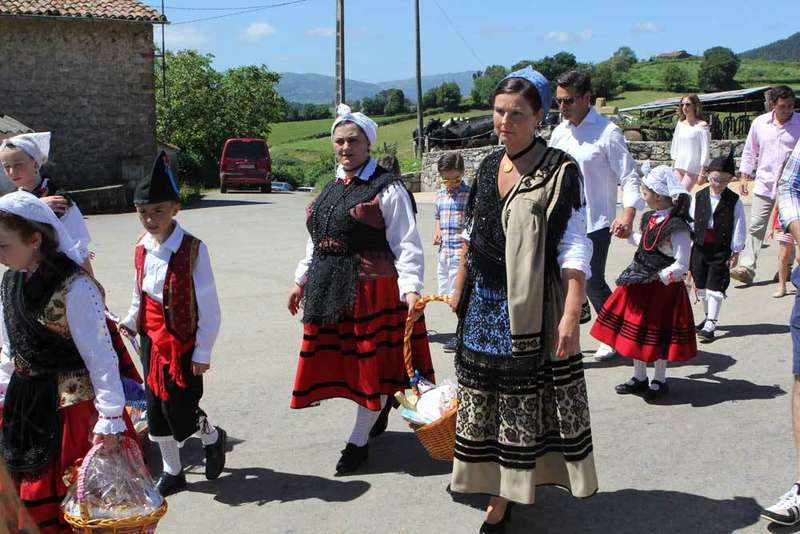 Desfile de ramos y ofrendas en dirección a la iglesia de Bedriñana.
