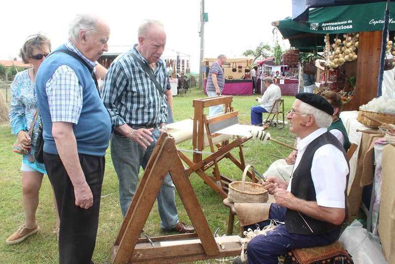 Y al pregonero le prestó ver la magnífica puesta en escena que en el en torno de la iglesia se organiza. Un paseo por la tradición y el reconocimiento a los oficios artesanales con presencia de acebacheru, cesteru, madreñeru, filandera, ferreru, facines, trillo o cuero. Artesanos que, en directo, mostraban su labor ante la presencia del público que se paraba a ver e incluso a preguntar. El mercáu se completaba con una amplia oferta de productos, incluida la gastronómica. En total, 90 artesanos.