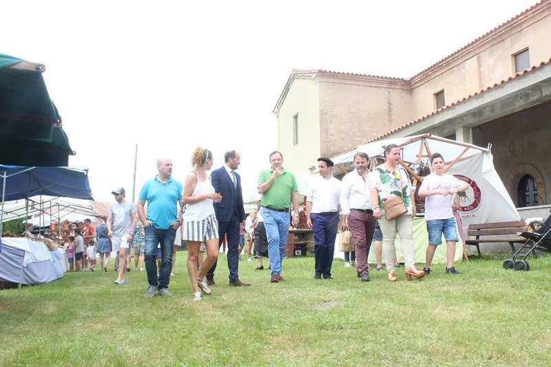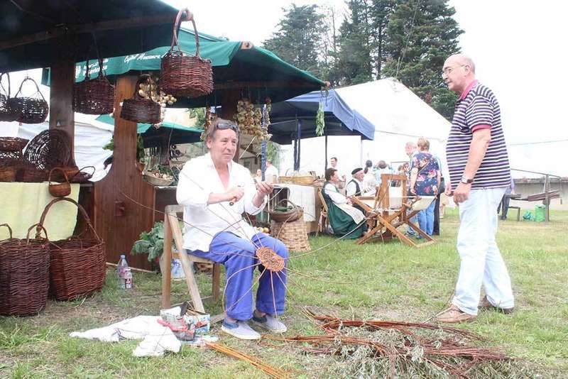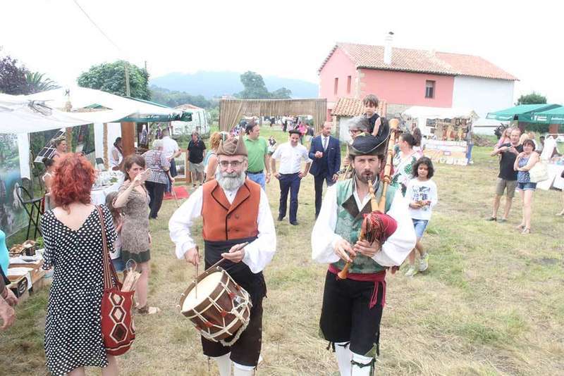 Y al pregonero le prestó ver la magnífica puesta en escena que en el en torno de la iglesia se organiza. Un paseo por la tradición y el reconocimiento a los oficios artesanales con presencia de acebacheru, cesteru, madreñeru, filandera, ferreru, facines, trillo o cuero. Artesanos que, en directo, mostraban su labor ante la presencia del público que se paraba a ver e incluso a preguntar. El mercáu se completaba con una amplia oferta de productos, incluida la gastronómica. En total, 90 artesanos.