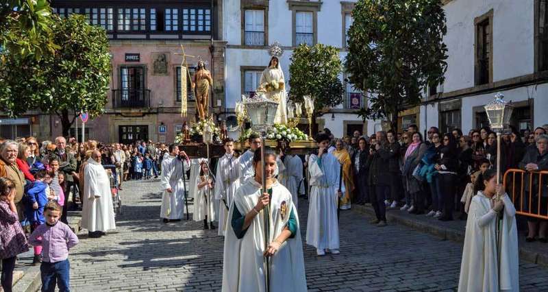 Procesión del Resucitado con María, por el casco antiguo de Villaviciosa.