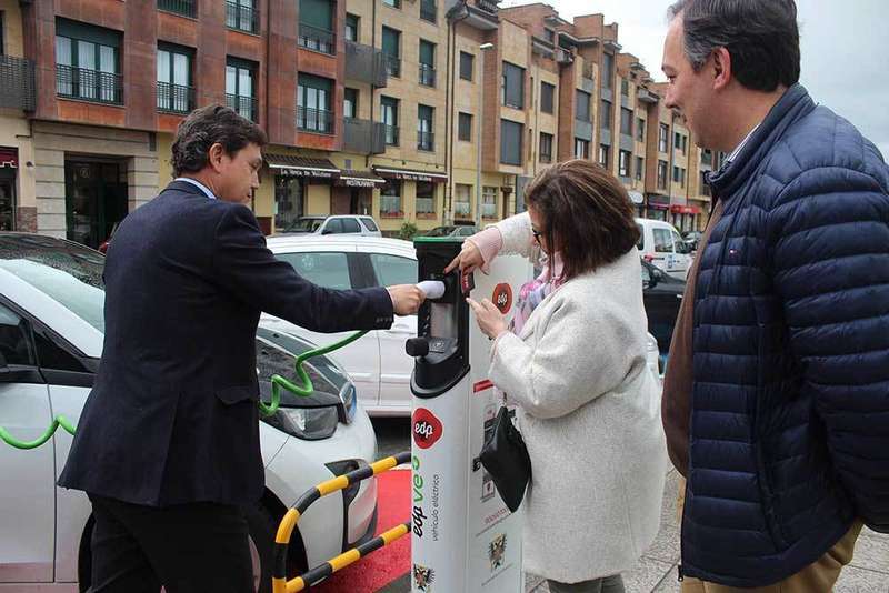 Villaviciosa se suma a la movilidad sostenible. Desde hoy jueves el concejo dispone de su primer punto de recarga para vehículos el eléctricos en vías públicas. El alcalde de Villaviciosa, Alejandro Vega, y el director de Casa Inteligente de EDP España, Antonio González- Lamuño, inauguraron, hoy jueves, la instalación de recarga «con la que damos el primer paso para la movilidad sostenible, el cuidado del Medio Ambiente y el ahorro energético», señaló el alcalde. Este primer punto de recargar es fruto del acuerdo entre el Ayuntamiento de Villaviciosa y EDP para fomentar el uso del vehículos eléctrico.