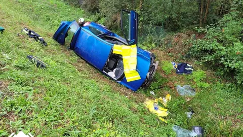Cinco heridos leves al volcar un vehículo que circulaba en La Piedra, Nava